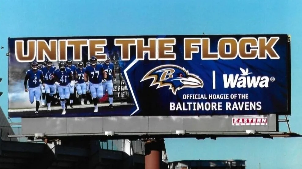 Wawa’s Unite the Flock billboard above I-395 North in Baltimore, MD